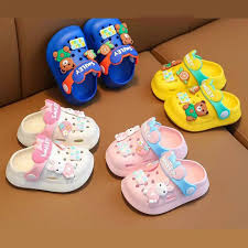 این دمپایی‌ها از مواد ضد آب مانند EVA یا PVC ساخته می‌شوند و دارای کفی ضد لغزش هستند تا از لیز خوردن کودکان در محیط‌های مرطوب جلوگیری کنند. طراحی آن‌ها معمولاً ساده و راحت است و به سرعت خشک می‌شوند.