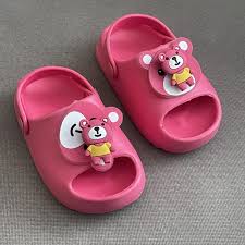 دمپایی حمام و استخر بچگانه: ویژگی اصلی این دمپاییها، مقاومت در برابر آب و خاصیت ضد لغزش بودن آنهاست. اغلب از جنس پلاستیک یا EVA (اتیلن وینیل استات) تولید میشوند و برای جلوگیری از لیز خوردن کودک در محیطهای مرطوب، ضروری هستند.